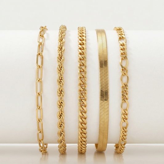 Crafted from high-quality stainless steel and finished with durable 18ct PVD gold plating, our jewellery is designed to resist tarnishing and retain its shine with everyday wear. Select styles are enhanced with handpicked pearls or decorative stones for an elevated finish.